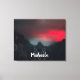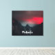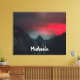 Fotografía paisajística de una puesta de sol irreal tomada en el lago Lago di Fusine, Italia. El color rojo es un poco exagerado, pero parado ahí en la vida real se sentía así. En un momento corto el sol rompió la niebla y casi desapareció. Con un monograma personalizable en las montañas.