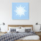 Impresión de lienzos con temática musical única para músicos y amantes de la música durante las vacaciones de invierno. Los g-clefs blancos que se fusionan forman un copo de nieve hecho de notas de trible clef. Utilice la plantilla de texto para añadir un primer o un monograma en el medio del diseño ornamental. Edite para cambiar el fondo azul inverso, el borde central del círculo y el elegante estilo antiguo a cualquier color que desee. ♡ Idyllfire