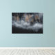 Montañas majestuosas con niebla rodando por el bosque de abetos bajo el techo