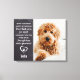 Celebra a tu mejor amigo y atesora esos preciados recuerdos con un personalizado único Mascota Memorial y Keepsake . Este lienzo conmemorativo de fotos de perros es el regalo perfecto para usted, familia o amigos para honrar a los seres queridos. Esperamos que su lienzo fotográfico mascota le traiga alegría, paz y recuerdos felices. Cita: "Cuando mañana empiece sin mí, no creo que estemos muy separados, por muy tiempo piensas en mí, estoy aquí dentro de tu corazón". Monumento al Perro - Mascota pierde la simpatía por mantener al perro. DERECHOS RESERVADOS © 2020 Judy Burrows, Black Dog Art - Todos los derechos reservados. Monumento al perro mascota - Impresión de lienzo fotográfico de Mascota Pérdida Keepsake