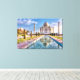 This amazing Getty Images photo features the famous Taj Mahal, a white marble mausoleum located in Agra. This image was captured at sunrise when the gentle sun enhanced the white marble with warm color tones.