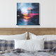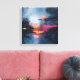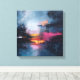Bring a touch of dramatic beauty and emotional depth into your home with this striking abstract canvas print. This artwork evokes the atmosphere of a moody, atmospheric landscape or a city light reflection on water, where deep, turbulent skies break open to reveal a single, warm light reflecting on the water below. The rich textures and deep teal, black, and shimmering gold colors create a powerful focal point for any room.