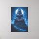 A majestic stone statue inspired by Indonesian sacred art sits in deep meditation, perfectly framed by a glowing full moon. Rising above mist-covered forests, the intricate carvings and serene posture evoke the spiritual heritage of Indonesia, blending celestial light with ancient temple design. This artwork captures a sense of divine calm, balance, and timeless reverence.