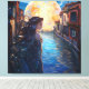 Bring a touch of magic to your space with this dreamy canvas print inspired by the romantic canals of Venice. A graceful woman with flowing hair stands in quiet contemplation, bathed in the glow of a luminous full moon. The reflections shimmer across the water as warm Venetian architecture frames the scene, creating a tranquil, fantasy-filled moment.