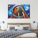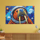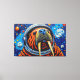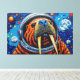 Esta obra de arte de Otis Porritt presenta un sorprendente retrato de un chimpancé encerrado en un casco espacial. Representado con texturas audaces y similares al impasto, la cara del primate estalla con un caleidoscopio de tonos vibrantes, desde azules y púrpuras profundos hasta naranjas y rojos intensos. La visera reflectante enmarca su mirada intensa, mientras que el cosmos circundante explota con nebulosas arremolinadas y planetas distantes en una interacción dinámica de color y luz. La aplicación rica y en capas de color crea una experiencia visual poderosa y casi táctil, que captura un sentido de asombro y exploración.