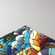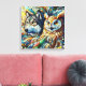 El arte de Ai representaba a un lobo y búho en un estilo de mosaico de azulejos. Ojos azules lobo y arte de pared de búho serio. Genial para cualquiera que ame la vida salvaje.