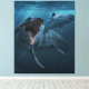 Fotografía submarina de los mosasaurios persiguiendo a tiburón, tema del mundo musical