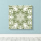 Esta mandala blanca se asienta sobre un musgo oscuro o un fondo verde oliva. Los colores son armoniosos y equilibrados. Parte de la colección Howlsplann Mandala.