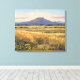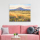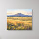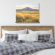 A canvas representation in the impressionist pictorial style of a vast plain bordered by large mountains in the distance.