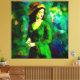 Una pintura generada por IA de una mujer con un vestido verde y un gorra