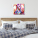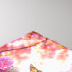 Mujer bonito rosa y morada con un efecto místico en un fondo etéreo de flores rosadas y mariposas. Su pelo parece un prisma de bonito.