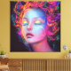 Esta fascinante obra de arte digital presenta un retrato femenino brillante con ojos cerrados, rodeado de cabello radiante y multicolor que se parece a nebulosas y galaxias. Los tonos de neón y la estética surrealista evocan un mundo de sueños futurista, perfecto para los amantes de la fantasía, el arte cibernético y el diseño visionario. Una pieza cautivadora.