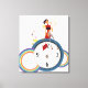 Lienzo Mujer sentada en un reloj y sosteniendo una taza d