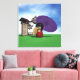 Representación digital 3D de un Kokeshi, muñeco japonés, en una pradera de verano