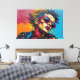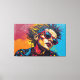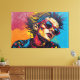 This vibrant digital artwork presents a striking portrait of a figure with a punk aesthetic, featuring a bold mohawk and round sunglasses. The face is rendered in an explosion of vivid, textured hues—blues, yellows, and pinks—contrasting sharply with the deep black outlines. A dynamic hot pink background, rich with impasto-like strokes, complements the subject's intense gaze. Halftone dots add a graphic pop art element, creating a powerful visual statement.