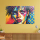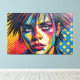 This vibrant digital artwork presents a striking portrait of a figure with a punk aesthetic, featuring a bold mohawk and round sunglasses. The face is rendered in an explosion of vivid, textured hues—blues, yellows, and pinks—contrasting sharply with the deep black outlines. A dynamic hot pink background, rich with impasto-like strokes, complements the subject's intense gaze. Halftone dots add a graphic pop art element, creating a powerful visual statement.