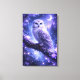 Mystical Owl in an Enchanted Forest features a luminous owl perched on a glowing branch beneath a crescent moon. Rich blue and purple hues create a magical nighttime atmosphere, perfect for fantasy wall art, celestial decor, and whimsical home accents.