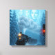 A stunning surreal artwork featuring a vintage steam locomotive traveling through a snowy forest while three ethereal female figures watch over from the cloudy sky above. The peaceful blue tones and glowing train lights create a magical atmosphere that blends reality with spirituality, perfect for those who appreciate both trains and meaningful symbolism. unique artwork. meaningful art.