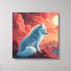 Dieses beeindruckende Fantasy-Poster fängt die wilde Schönheit eines weißen Wolfs ein, der majestätisch auf einem Felsen sitzt und über eine surreale Landschaft blickt. Die dramatischen roten Wolken am Himmel und die leuchtende Sonne erzeugen eine atemberaubende Atmosphäre voller Mystik und Kraft.
