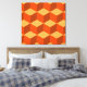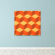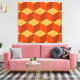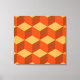 El diseño presenta un patrón de entrelazado de cubos naranjas brillantes. Se podría considerar como una reminiscencia del arte de M.C. Escher, pero simplemente usa formas geométricas básicas para lograr un efecto atractivo y elegante. Parece una escalera interminable en varios tonos de naranja.
