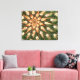 La impresión de lienzos estirados con mucho encanto muestra una imagen dinámica de un cactus esférico simétrico, verde oscuro, con espinas naranjas y blancas que irradian hacia afuera como un estallido.