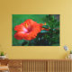 Esta impresión de tela estirada de 36" x 24" muestra una imagen de una planta florida tropical innegablemente, el Hibiscus, con profundas flores de naranja. El arte de lienzo es un bello añadido a la casa o la oficina y siempre es un buen regalo! Siéntase libre de contactarme a través de Zazzle si tiene preguntas sobre esta impresión o le gustaría ayudar a transferir esta imagen a un lienzo de diferente tamaño o a un elemento totalmente diferente. Me complace ayudar a asegurar que la imagen encaja correctamente.
