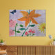 Bonito original de acuarela floral con un magnífico lirio naranja con rosas silvestres, una margarita amarilla y delicados floreros rojos. Una linda mariposa azul está revoloteando por ahí buscando una flor en la que aterrizar para el néctar. Con un elegante fondo lila, los pétalos naranjas, rosados, rojos y amarillos crean una colorida y vibrante imagen de flores de verano para aligerar tu espíritu y hacerte sonreír.