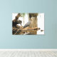 Graciosa garza azul posa en la naturaleza , presentada en la impresión decorativa de lona.