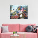 Lienzo Naturaleza muerta de flores y frutas con pájaros