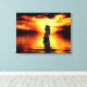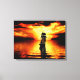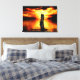 Barco de vela en la huella de lona de arte de la puesta de sol.