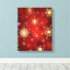 Lienzo Navidades Copos de nieve dorados con fondo rojo