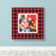 Este lienzo de arte mural de estilo casa de campo con Navidades de mantas de lujo presenta un espacio de fotos familiar cuadrado personalizado enmarcado por un cheque rojo y negro de búfalo / fondo con estampado. Consejo de fotos: recortar la foto en forma cuadrada antes de subir.