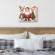 Un diseño festivo con un muñeco de nieve, Santa, ciervo y un árbol de Navidad decorado, ambientado en un fondo dorado y salpicado de flores, que evoca la calidez y la magia navideña. "Imagen original generada por Meta AI. La IA generó obras de arte. Con licencia CC BY-SA 4.0."