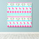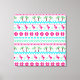 Navidades tropicales feos y de diseño de suéter con flamencos rosas, palmeras y olas de playa azules.