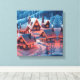 Lienzo Navidades Luces Decoradas Aldea Cubierta de Nieve