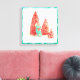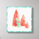 Un ciervo acuático vintage se para en la nieve frente a los abruptos árboles de Navidad con botellas rosas. Un marco acuático enciende la viñeta.