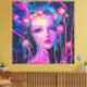 Entrar en un mundo de ensueño brillante con este retrato surrealista de neón de una diosa celestial. Bañada en tonos rosados, azul eléctrico y amarillo brillante, esta obra de arte combina belleza etérea con fantasía psicodélica.