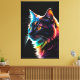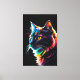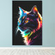 This vibrant neon cat portrait transforms contemporary animal art into a bold decorative statement. Illuminated with luminous rainbow tones against a deep black background, the feline’s intense golden gaze creates a powerful focal point that instantly elevates any space.
