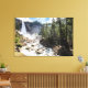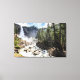 Esta foto muestra el invierno tardío en las Cataratas de Nevada en plena fluidez y el agua se desliza por la cara del acantilado y se vuelve a tomar en el río merced mientras pasa rocas y abetos.