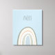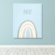 Con Neutral Hues, ilustré este arco iris con la mente de un bebé. Las lluvias después de una tormenta son una imagen tan poderosa y alentadora. Personalice este lienzo envuelto con el nombre del niño. Un gran regalo para los nuevos padres. Cambie el color de fondo azul si lo desea.