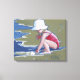 Lienzo Niñita con gorra en la playa con olas