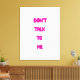 Explora nuestro llamativo texto rosa que dice "No me hables". Es la mezcla perfecta de diversión y relajación, haciendo que su espacio sea el único.