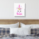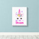 Una galería de lienzo impresa con una cita inspiradora que dice: No Olviden Soñar. Diseñado con un unicornio rosa de moda. Decorado con un elegante cabecero de flores. Mariposas caprichosas volando por ahí. Fondo de color púrpura pálido, rosa y amarillo.