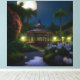 Relájese en el cenador bajo la luz de la luna, rodeado de hermosos árboles y flores de jardín.