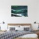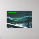 Una escena nocturna en el extremo norte. La noche ha caído y hay un indicio de las luces del norte más allá de las montañas en el horizonte. La luz de la luna refleja el paisaje cubierto de nieve. Un búho se sienta en un abeto muerto buscando voles. Añade tu propio texto.