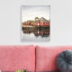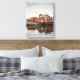 Fotografía paisajística de casas tradicionales de madera roja en la costa de Noruega, Escandinavia.