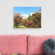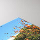 Hermoso y nostálgico paisaje de árboles y hojas de otoño, y los pájaros volando sobre el cielo azul con edificios de la ciudad parados a la distancia en el histórico Jardín Hama Rikyu, Hama Imperial Detached Palace Garden en Tokio, Japón.