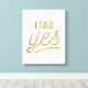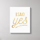 Regale esta glamorosa apariencia de Relieve metalizado dorado "dije que sí" tipografía regalo a la novia para ser que sepa quién se va a casar pronto. Esto haría una gran ducha de novia o soltera, cuando regalo fiesta. Puede agregar texto personalizado para crear un regalo de mantenimiento único. Diviértete, señoras.