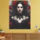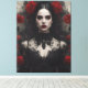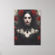 Una novia gótica con su vestido negro de boda rodeada de rosas rojas está lista para su boda del día de Halloween. Arte generado por IA