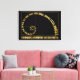 Arte espiral fibonacci, también conocido como ratio dorado, proporción divina, sección dorada, secuencia fibonacci. Interpretación artística. Texto en la ruta de espiral de Fibonacci. Tonos dorados simulados.